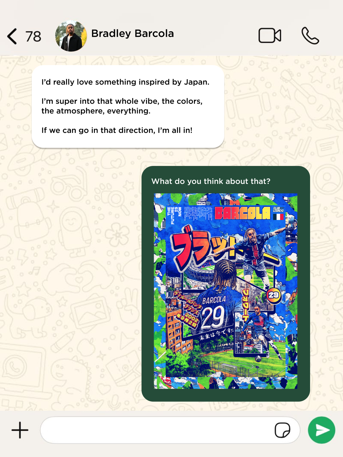 Passionné par le Japon, Barcola nous a demandés de créer des designs qui le plongent dans l'univers Manga.