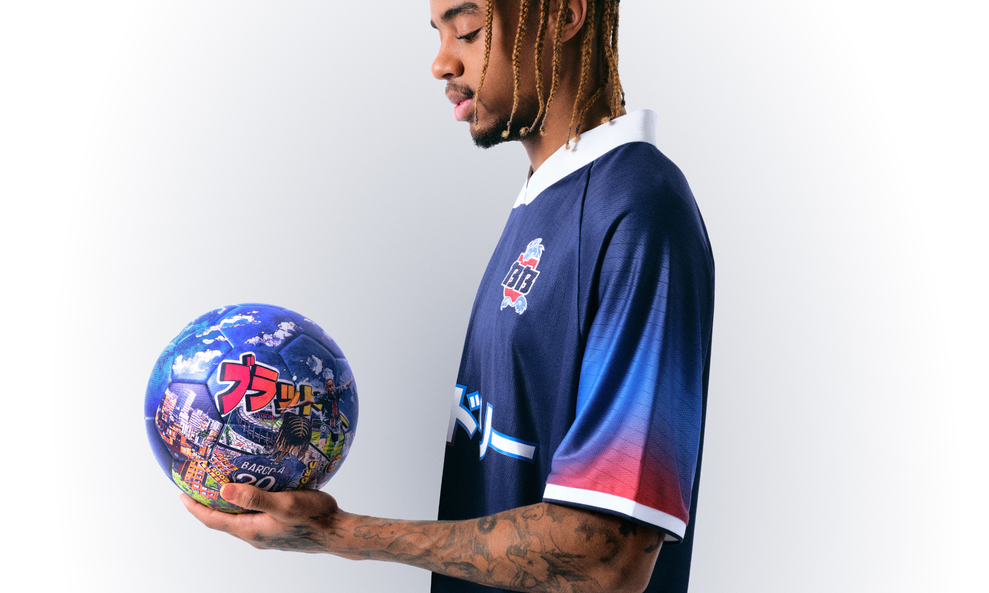 Il a décidé de créer un ballon de intégrant de nombreuses références à cette passion : des textes en japonais et des illustrations de ses célébrations façon manga.