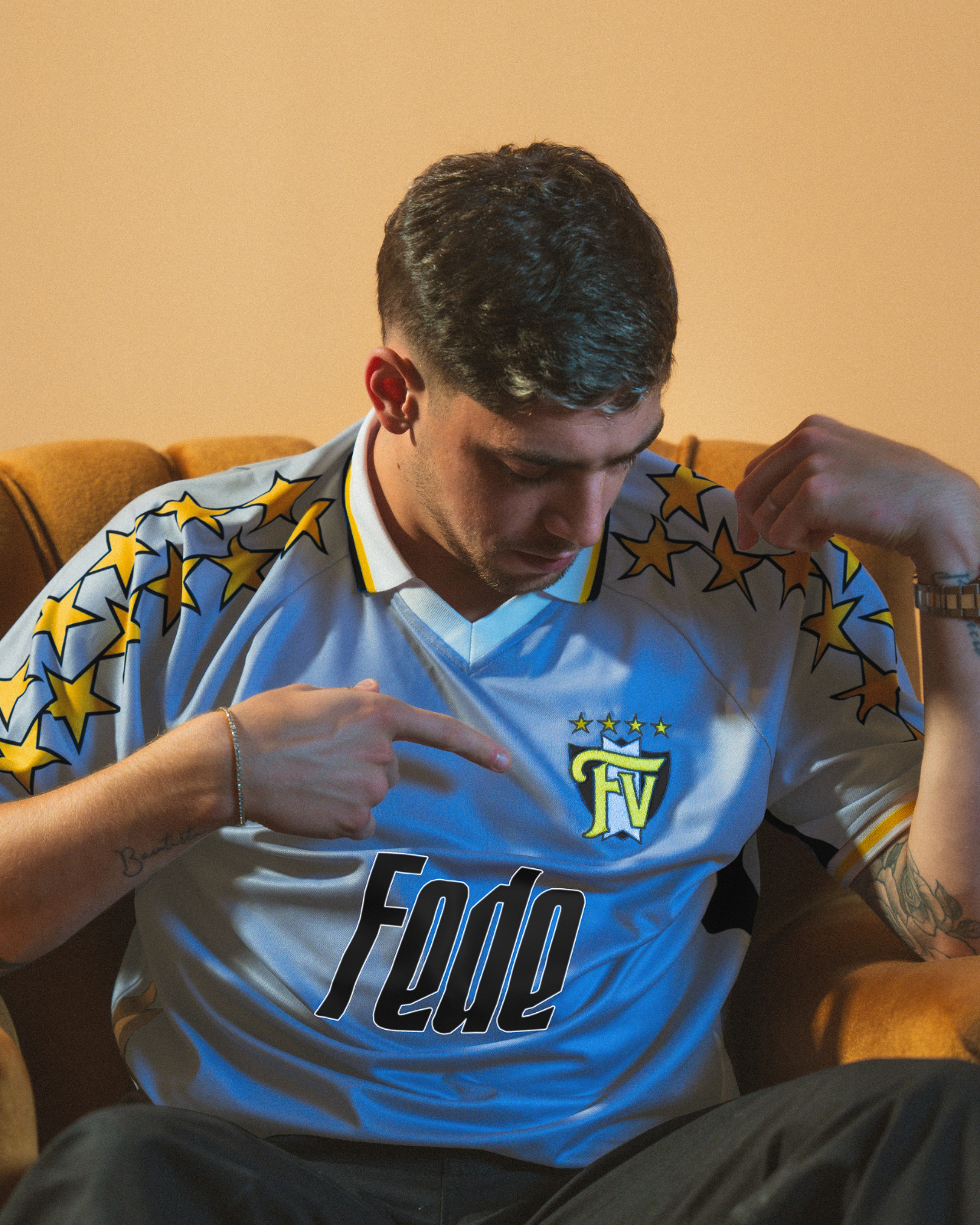 Un maillot iconique aux couleurs de l’Uruguay et du Real Madrid, imaginé avec Fede Valverde. Un design exclusif qui célèbre son parcours et son identité unique.